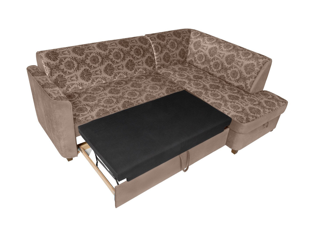 Rohová sedačka s rozkladom a úložným priestorom Amberg P - béžová / vzor / drevo (TX061)