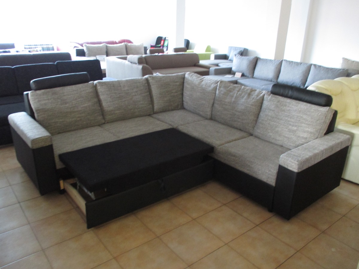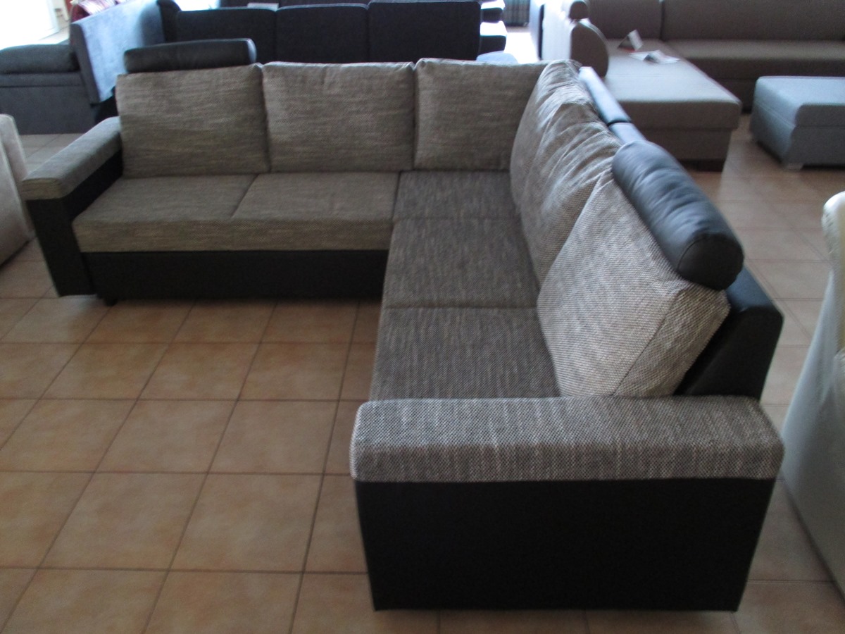 Rohová sedačka s rozkladom a úložným priestorom Belise SR - armada PU čierna / Lucy 1 sivá
