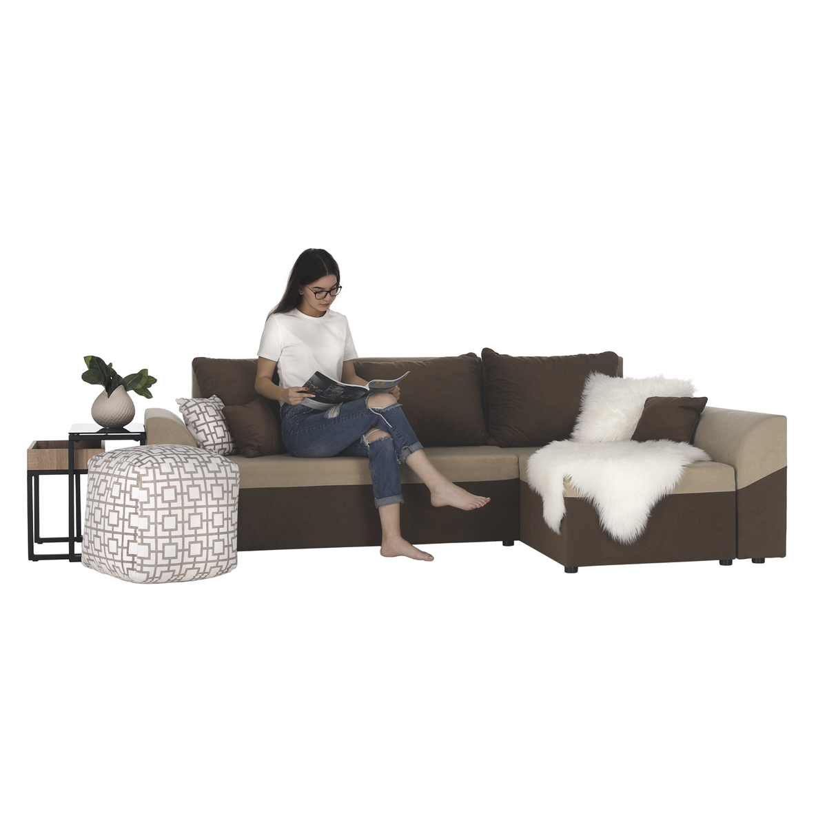 Rohová sedačka s rozkladom a úložným priestorom Desny L/P - hnedá / béžová