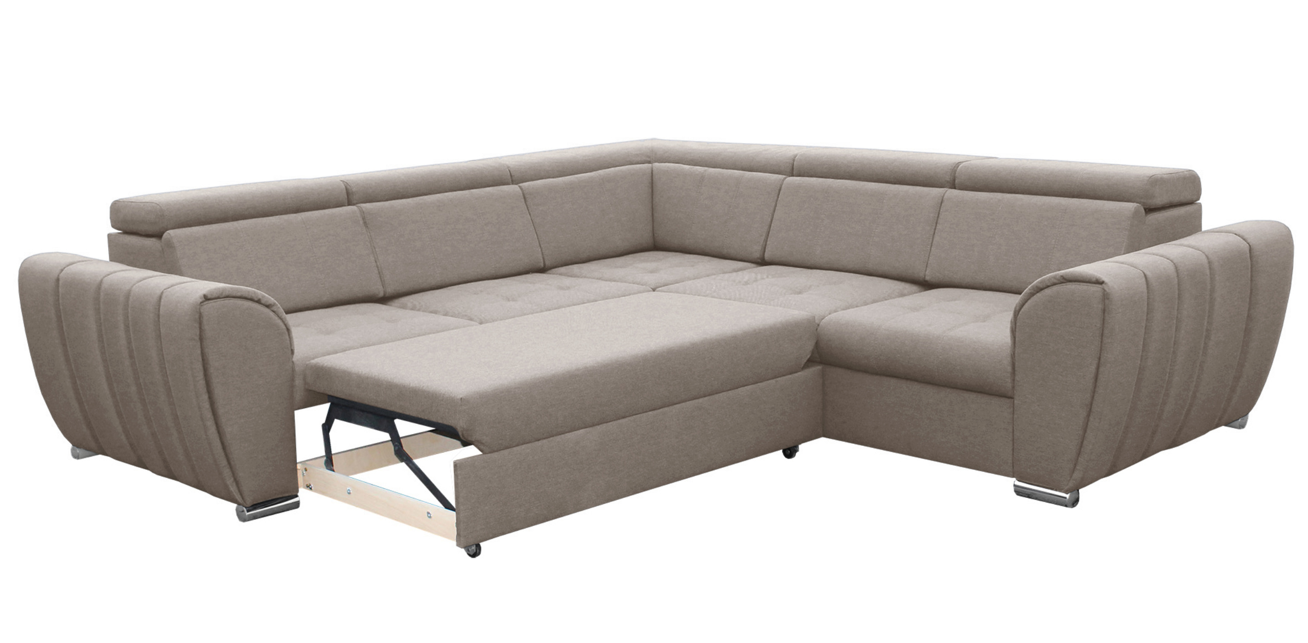 Rohová sedačka s rozkladom a úložným priestorom Grenade P - béžová / chróm