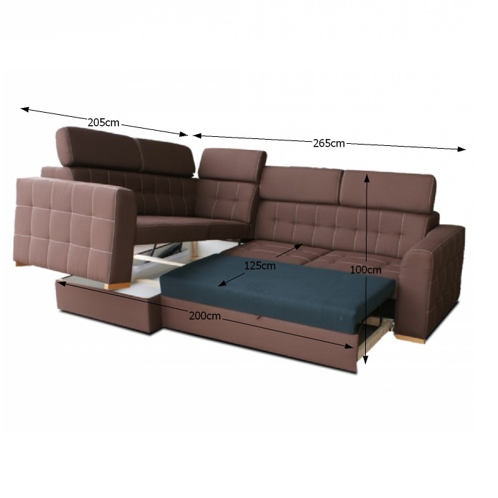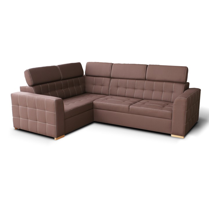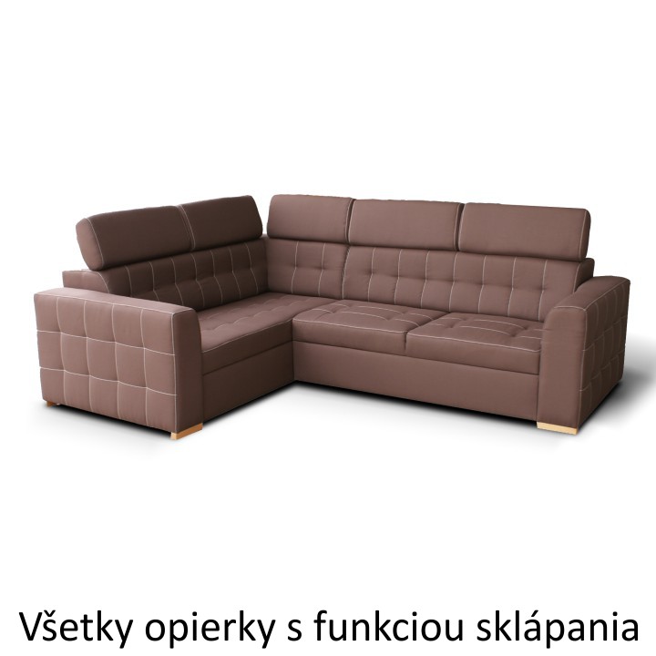 Rohová sedačka s rozkladom a úložným priestorom Kazara RV L - čokoládová / svetlé šitie