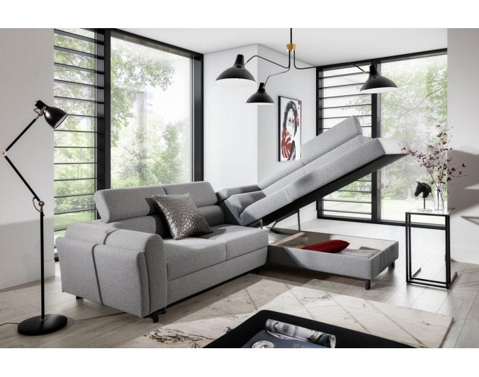 Rohová sedačka s rozkladom a úložným priestorom Korense L - sivá (Berlin 01)