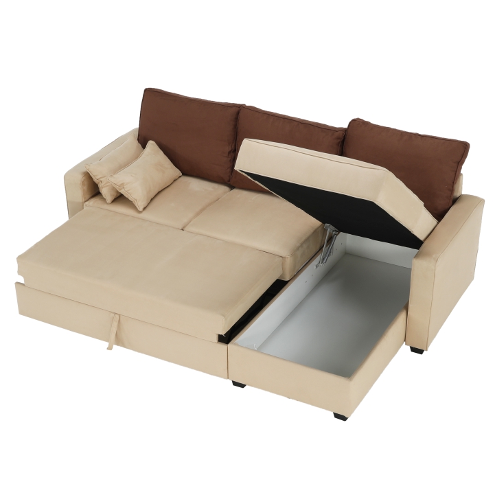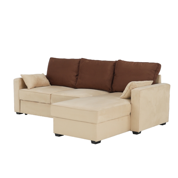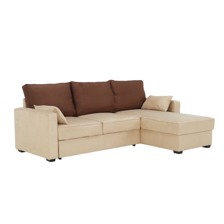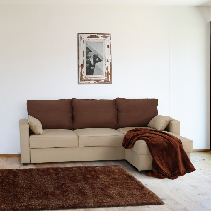 Rohová sedačka s rozkladom a úložným priestorom Mamba L/P - béžová / čokoládová