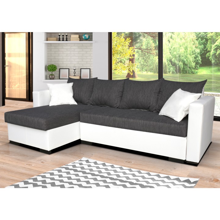 Rohová sedačka s rozkladom a úložným priestorom Marsala L/P - biela / sivá
