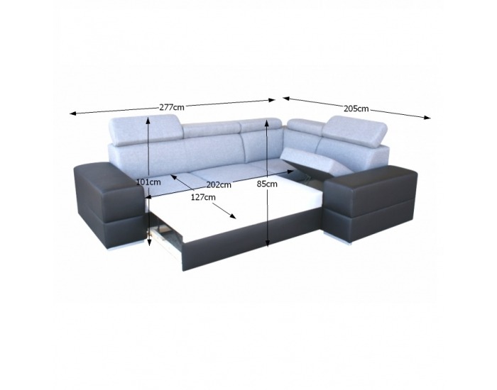 Rohová sedačka s rozkladom a úložným priestorom Monako P - svetlosivá / čierna