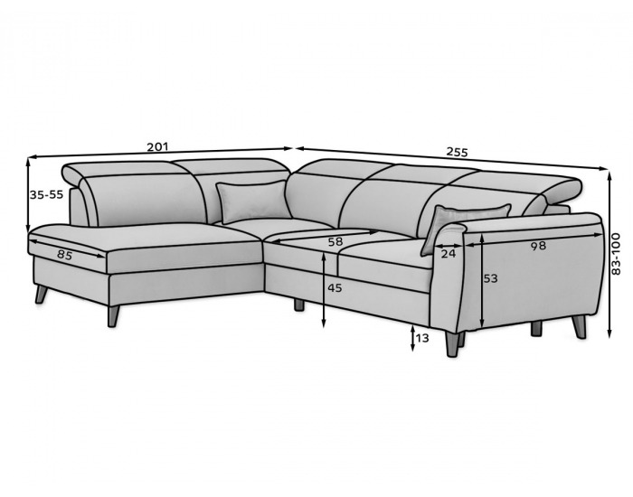 Rohová sedačka s rozkladom a úložným priestorom Nebia L - tmavosivá