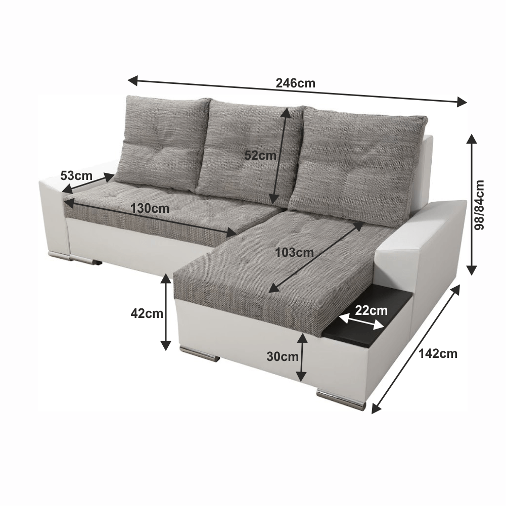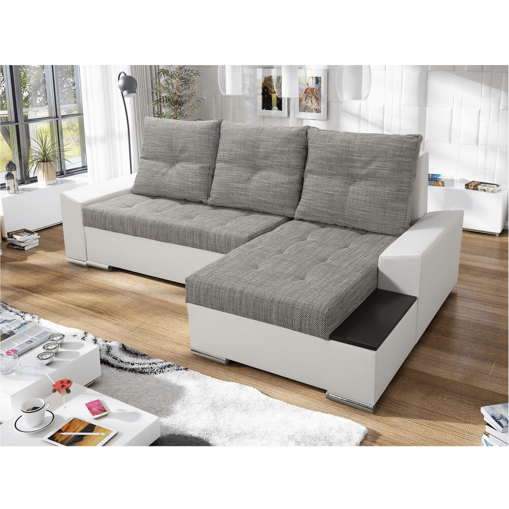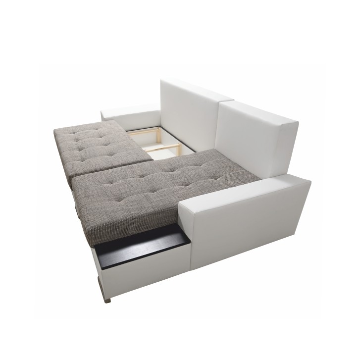 Rohová sedačka s rozkladom a úložným priestorom Nemo 2 New P - biela / sivohnedá