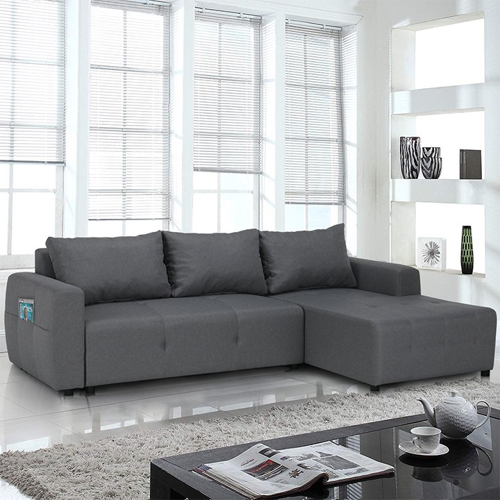 Rohová sedačka s rozkladom a úložným priestorom Nikos P - sivá