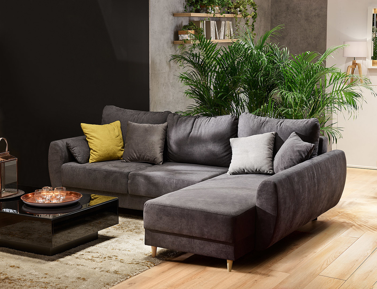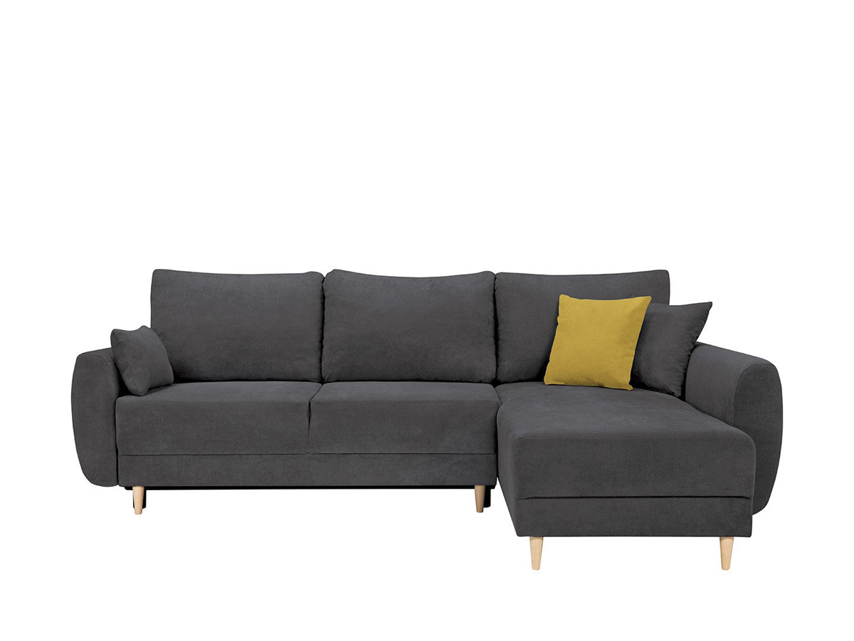 Rohová sedačka s rozkladom a úložným priestorom Oslo Lux L/P - tmavosivá / žltá