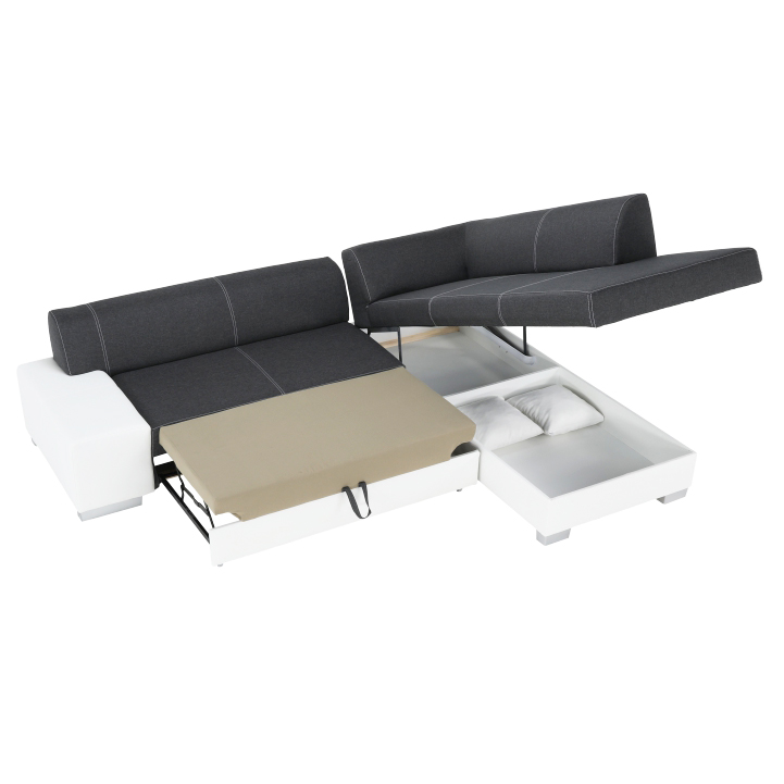 Rohová sedačka s rozkladom a úložným priestorom Peter New P - biela / sivá