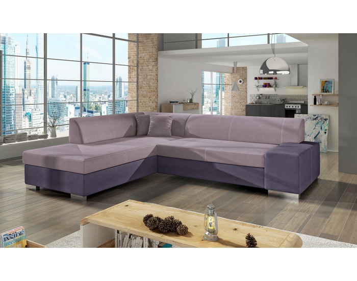Rohová sedačka s rozkladom a úložným priestorom Pinero L - ružová / fialová