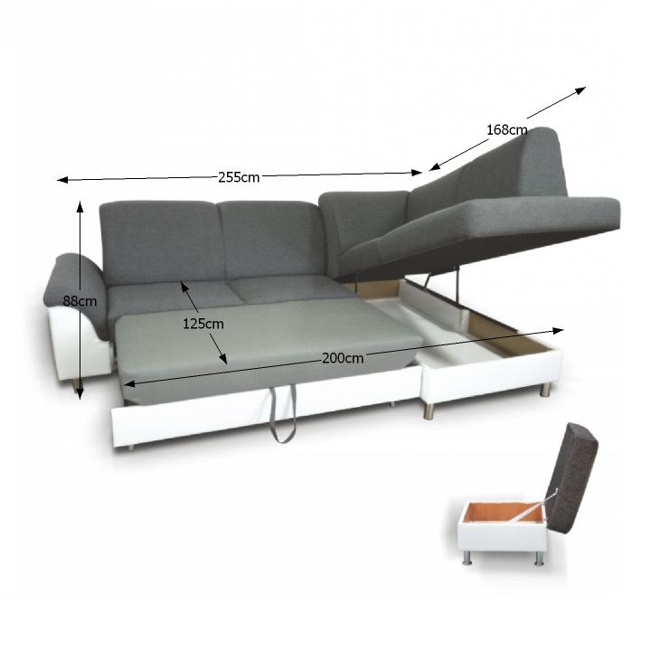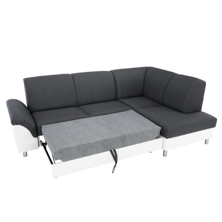 Rohová sedačka s rozkladom a úložným priestorom Polo P - biela / tmavosivá