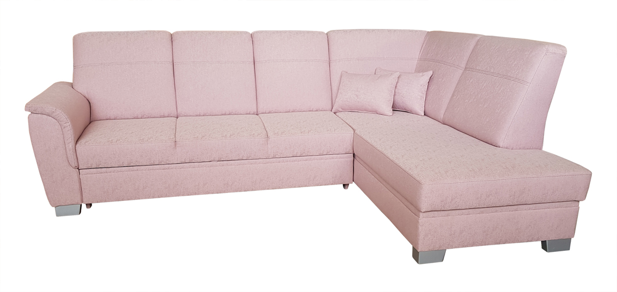 Rohová sedačka s rozkladom a úložným priestorom Romeo 3 P - ružová / strieborná matná