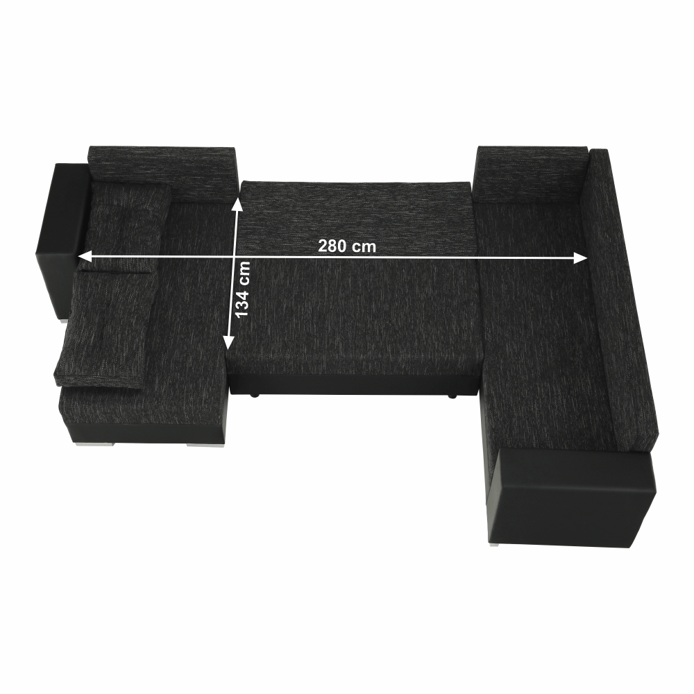 Rohová sedačka s rozkladom a úložným priestorom Stila L/P - čierna / čierny melír