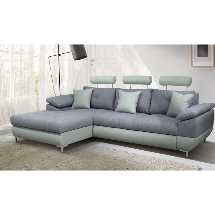 Rohová sedačka s rozkladom a úložným priestorom Tvins L - sivá / mentolová