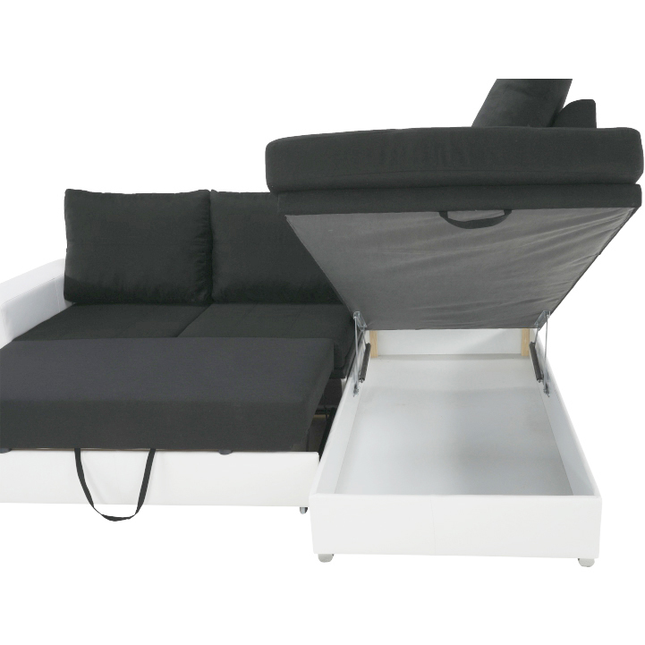 Rohová sedačka s rozkladom a úložným priestorom Waran P - biela / čierna