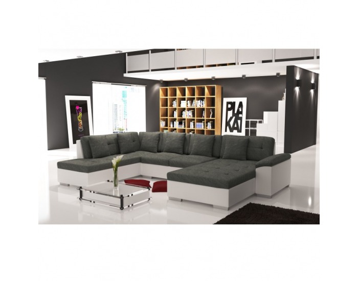 Rohová sedačka U Alma L - biela / sivohnedá melírovaná