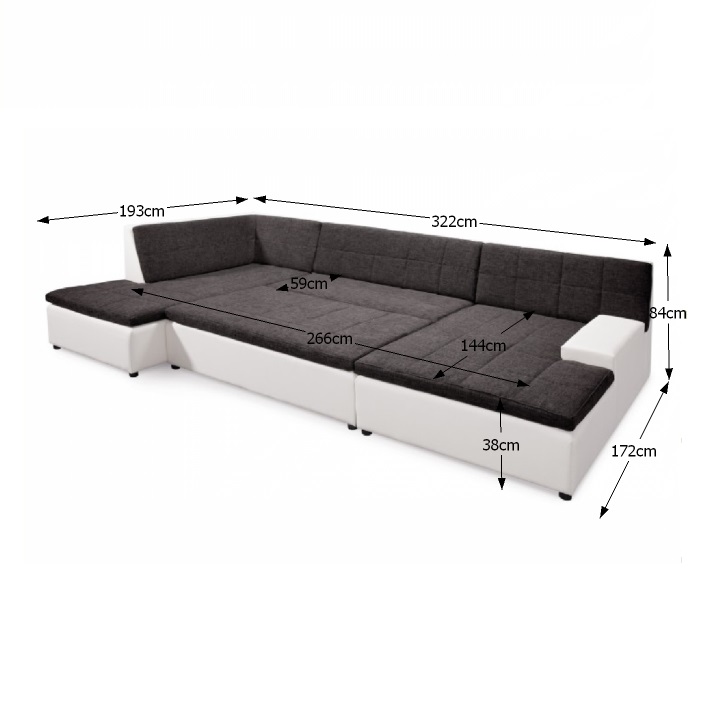 Rohová sedačka HOUSTON L je pohodlná sedačka v tvare U, ktorú možno umiestniť do moderne zariadenej obývacej izby. Obsahuje taburetku, vďaka ktorej po priložení poskytuje sedačka dostatok priestoru na každodenné spanie. Plocha na spanie má rozmery 266x144 cm. Sedačka ponúka príjemné sedenie s dekoratívne prešitým sedákom a opierkou. Sedačka je na výber v ľavom aj v pravom prevedení. Korpus je čalúnený bielou ekokožou (Madryt 120) a sedenie sivou látkou (Inari 96). Výška sedu je 38 cm a hĺbka sedu je 59 cm.