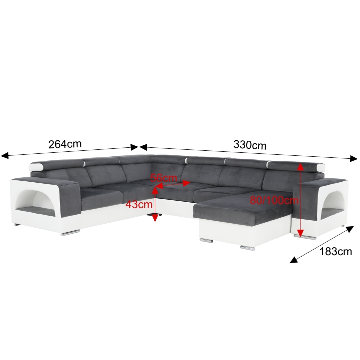Pôvab a šarm sedacej súpravy KAMELIA L určite nikomu neunikne. Vznešená, majestátna, elegantná. Sedacia súprava v tvare U v pravom prevedení si Vás získa množstvom na sedenie, ktoré ponúka. Veď posúďte samy, jej rozmery sú (ŠxHxV): 330x183/264x80/100 cm. Je celočalúnená látkou Aria v decentnej farbe sivá 17 a v kombinácii s ekokožou Soft vo farbe biela 31 sa ešte viac zvýrazní jej prepracovaný a sofistikovaný dizajn. Hlavu si môžete oprieť o akúkoľvek z piatich opierok hlavy, ktoré sú polohovacie až v šiestich stupňoch. Táto elegantná dáma má však aj praktické vlastnosti. Jednoducho ju rozložíte na hodnotné lôžko na spanie s rozmerom 130x270 cm či využijete jej úložný priestor. Sedaciu časť tvorí pružinová výplň. Výška sedu je 43 cm a hĺbka sedu neuveriteľne pohodlných 56 cm. Vychutnávajte si chvíle pohody so sedacou súpravou Kamelia.