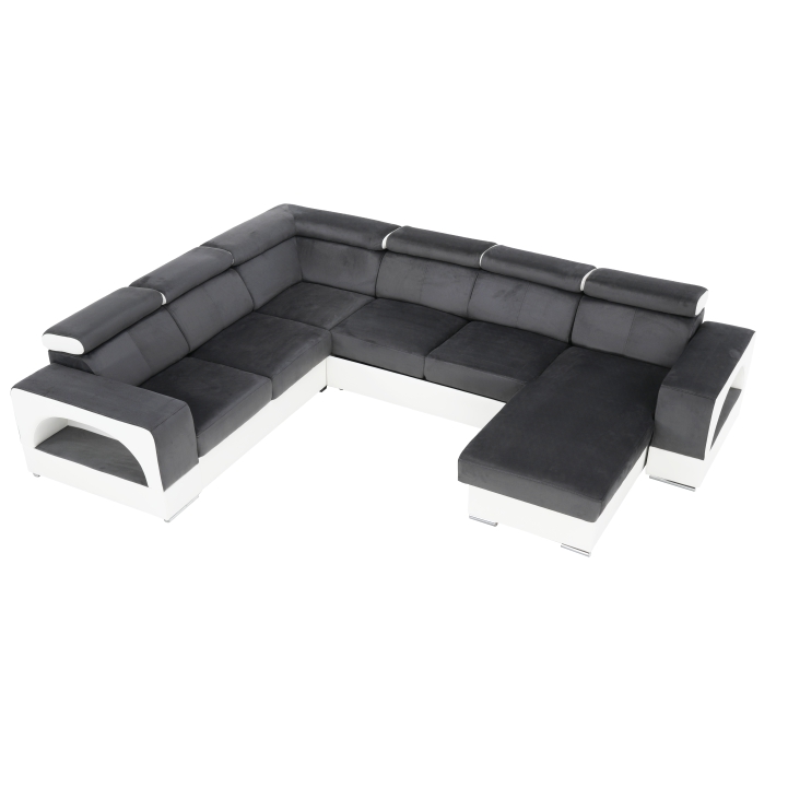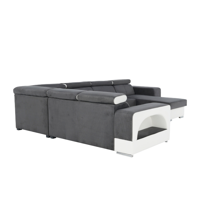 Rohová sedačka U s rozkladom a úložným priestorom Kamelia L - biela / sivá