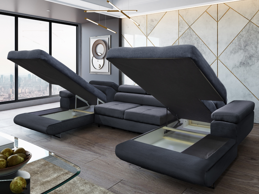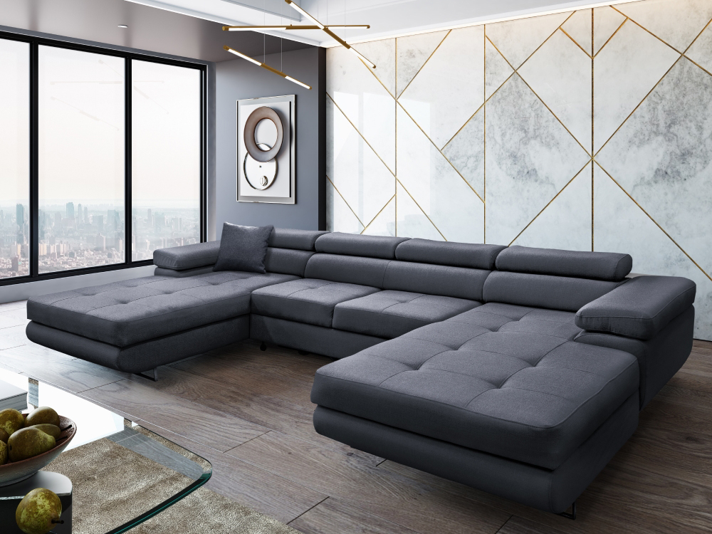 Doprajte svojej domácnosti spojenie štýlu, pohodlia a praktickosti s rohovou sedacou súpravou AMARETA U, ktorá v sebe spája moderný dizajn, kvalitné spracovanie a funkčnosť. Vďaka rozkladacej funkcii sa jednoducho premení na priestranné lôžko s rozmerom (ŠxD): 125x285 cm, ideálne na príležitostné spanie alebo lenivé víkendy pred televíziou. Sedačka je čalúnená kvalitnou látkou Monolith 97 v elegantnej sivej farbe, pričom látka ponúka výbornú oderuodolnosť 100 000 cyklov podľa testu Martindale, čo zaručuje dlhú životnosť aj pri intenzívnom používaní. Celočalúnené vyhotovenie, vrátane zadnej strany, umožňuje jej umiestnenie do priestoru bez nutnosti prisunúť ju ku stene. Rozmery sedačky sú (ŠxHxV): 350x202/202x70/90 cm, s výškou sedu 43 cm a hĺbkou sedu 60 cm, čo ponúka pohodlné sedenie pre viacero osôb. Šírka otomanu je 104 cm a sedacej časti 142 cm. Výška spodného priestoru od podlahy je 8,7 cm, čo uľahčuje upratovanie pod sedačkou. O maximálne pohodlie sa stará výplň z PUR peny a HR peny, ktorá zabezpečuje optimálnu mäkkosť a zároveň pružnú podporu. Štyri polohovateľné opierky hlavy, nastaviteľné v šiestich stupňoch, poskytujú ideálnu oporu hlavy a krčnej chrbtice podľa individuálnych potrieb. Estetiku sedačky podčiarkuje dekoratívne prešitie sedacej časti, ako aj moderné kovové nožičky v striebornej farbe, ktoré z nej robia štýlový prvok každej obývačky. Nechýba ani praktický úložný priestor, ktorý oceníte na uloženie textílií alebo doplnkov, a ako bonus je súčasťou aj jeden dekoratívny vankúšik. Amareta U je vyhotovená ako univerzálna rohová súprava, dodávaná v demonte, pripravená stať sa novým centrom vášho domova.