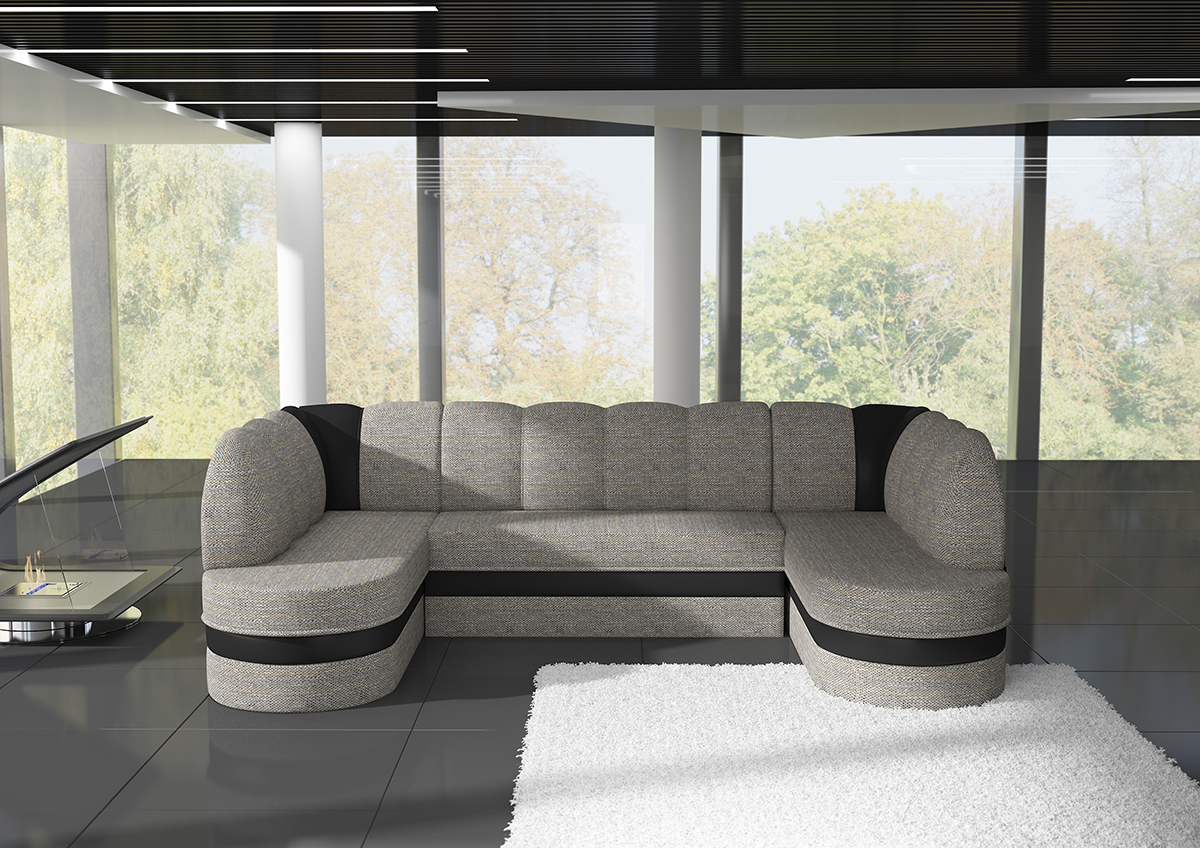 Rohová sedačka U s rozkladom Kaserta L/P - sivá / čierna