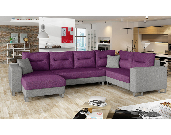 Rohová sedačka U s rozkladom a úložným priestorom Duero P - tmavoružová / svetlosivá