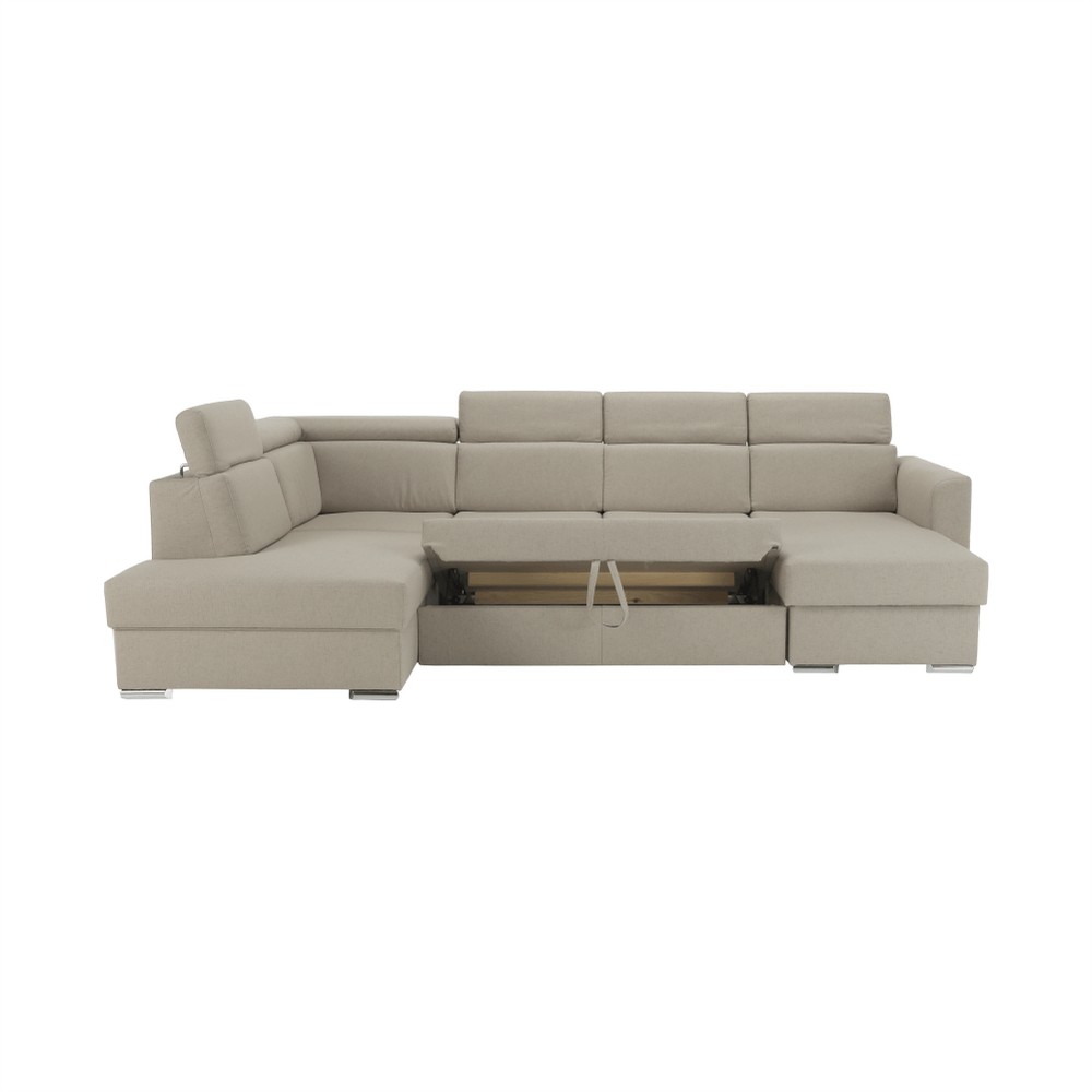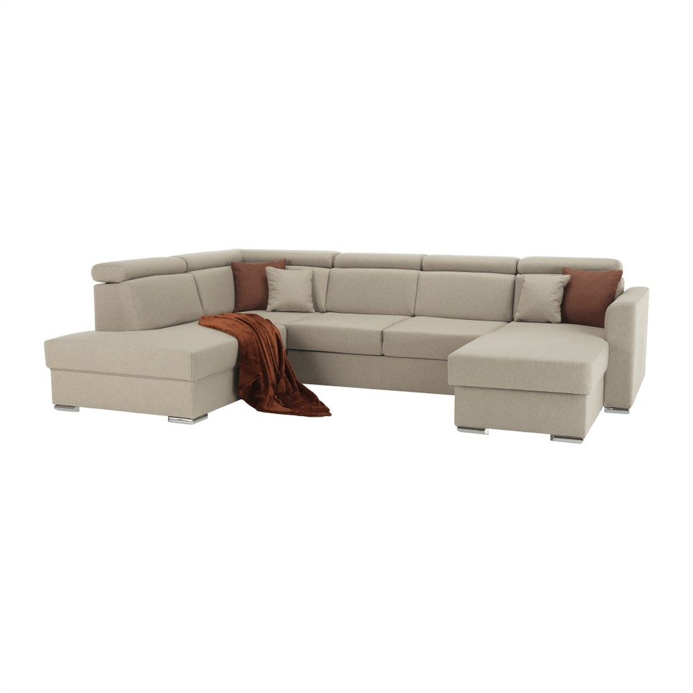 Luxusná rohová sedačka MARIETA L je rozkladacia sedačka v tvare U s úložným priestorom, ktorá poskytuje dostatok miesta pre každého člena rodiny. Čelnú časť tvorí dvojsed, po jej ľavej aj pravej strane sú pohodlné otomany. Spacia plocha má rozmery 260x130 cm. Do úložného priestoru možno uložiť deky, vankúše či posteľné prádlo. Prednosťou sedačky sú polohovateľné opierky hlavy, ktoré zabezpečujú pohodlné opretie chrbta. Sedačka je na výber v ľavom aj v pravom prevedení. Na čalúnenie bola použitá kvalitná béžová látka Cablo 02. Súčasťou sedačky sú aj 4 dekoračné vankúšiky, z ktorých dva sú v béžovej farbe a dva v tehlovej farbe Cablo 05. Ak vám nevyhovuje farba, je možné si vybrať sedačku v žltej farbe s hnedými vankúšikmi. Ak vám však nevyhovuje jej rozmer, je tu možnosť vyskladať si sedačku vo vlastnom rozmere podľa vlastných predstáv. Čo sa týka farieb, máme pre vás hneď 7 farebných prevedení látky Cablo a 7 farebných prevedení ekokože. Odtiene nájdete v priloženom vzorkovníku. Výber farebného odtieňa poznačte pri objednávaní priamo do poznámky. Pri individuálnej objednávke je potrebné zaplatiť 20% zálohu z danej sumy. Po uhradení zálohy bude Vaša požiadavka zadaná do výroby. Dodacia doba 6-8 týždňov. Cena takto zloženej sedačky v inej farbe závisí od počtu jednotlivých dielov, ktoré ju tvoria. Odporúčame preveriť si konečnú cenu. Výška sedu je 42 cm. Hĺbka sedu je 62 cm.