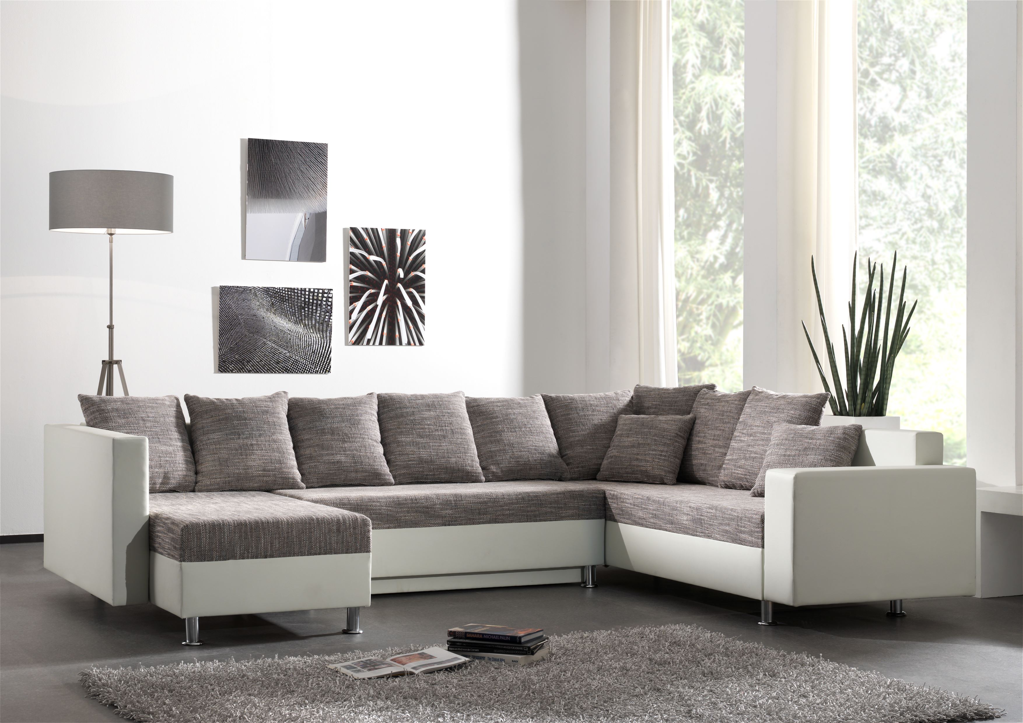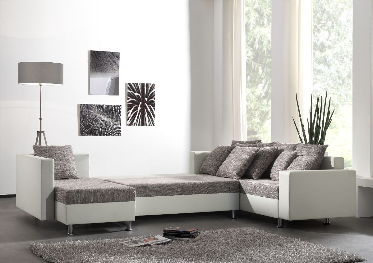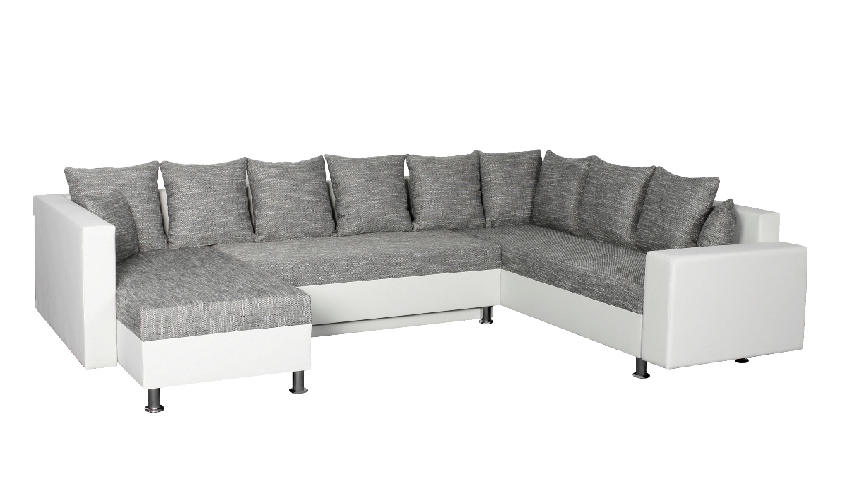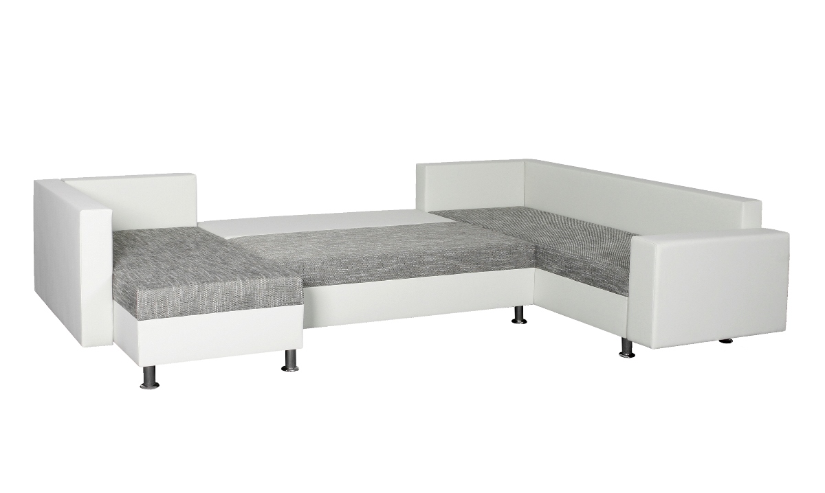 Rohová sedačka U s rozkladom a úložným priestorom Pauline - armada PU biela / lucy 1 sivá
