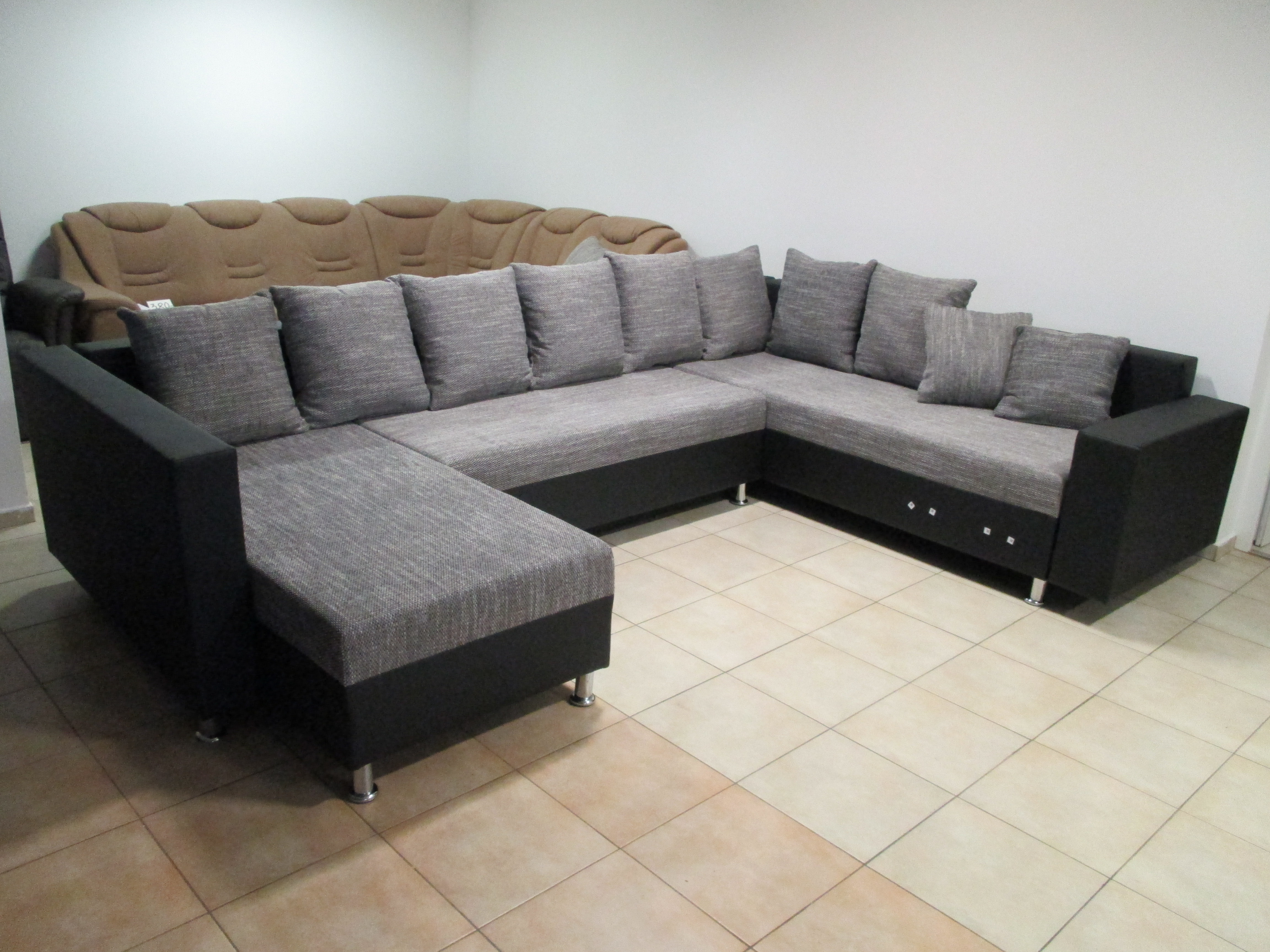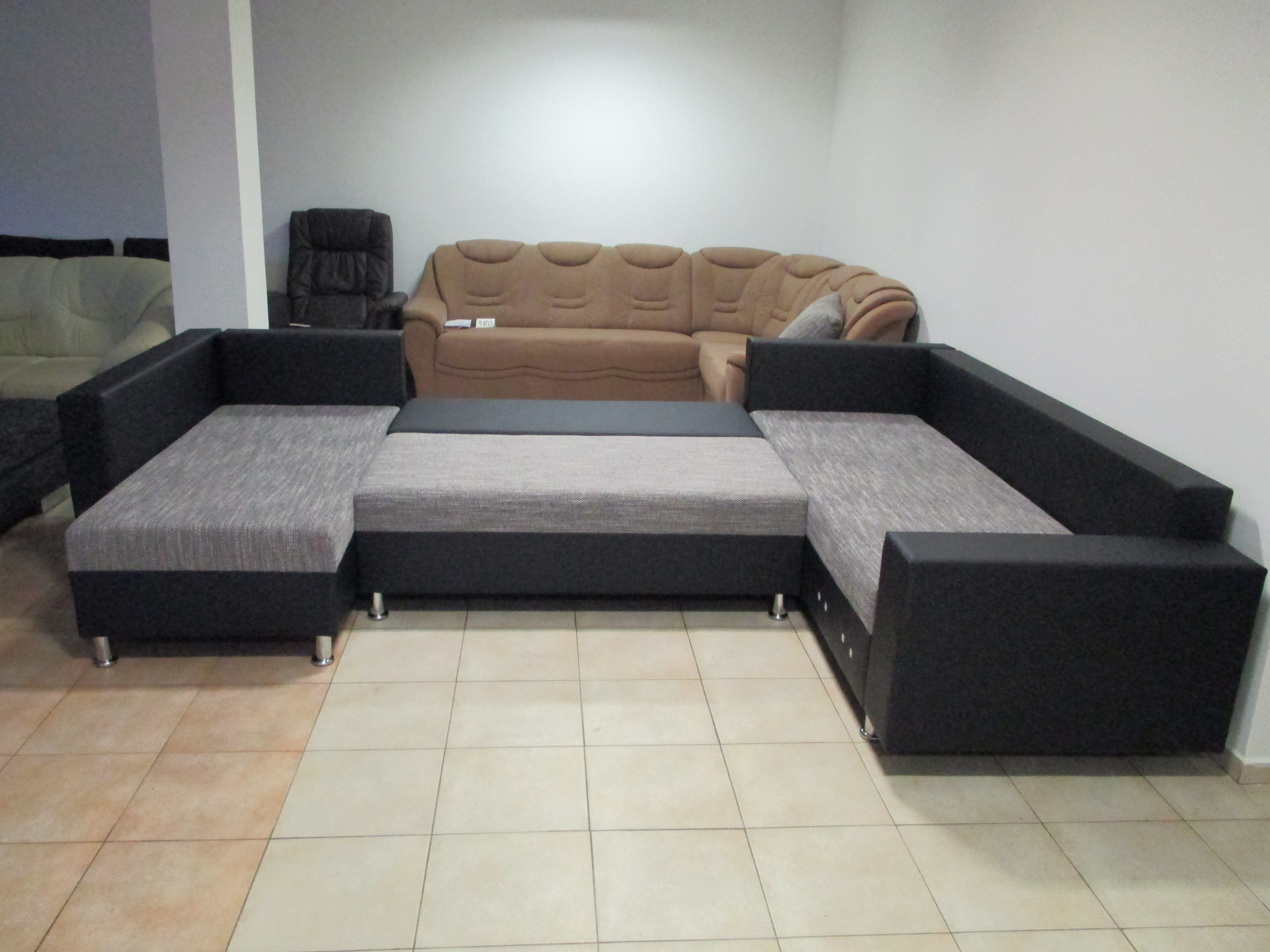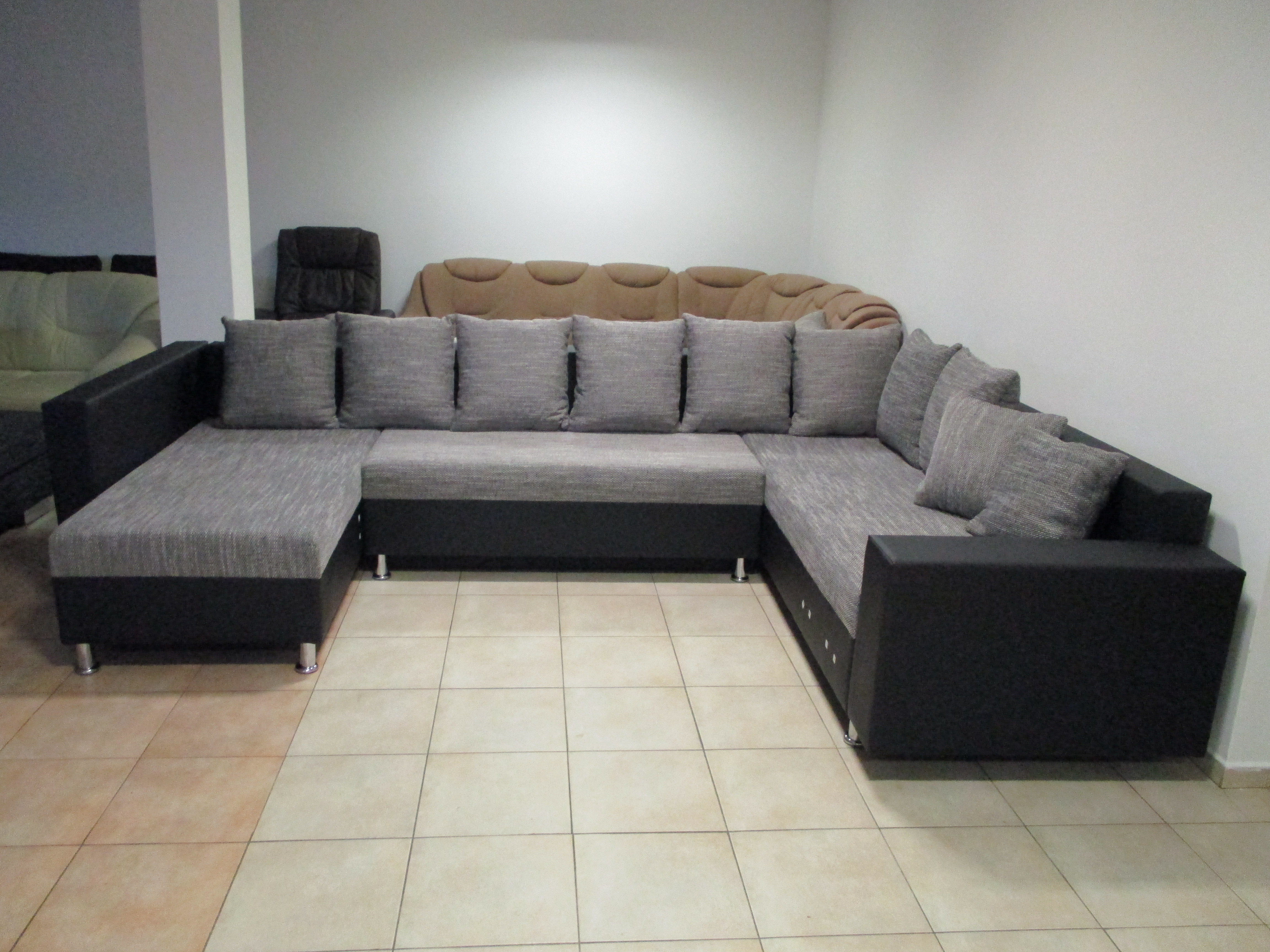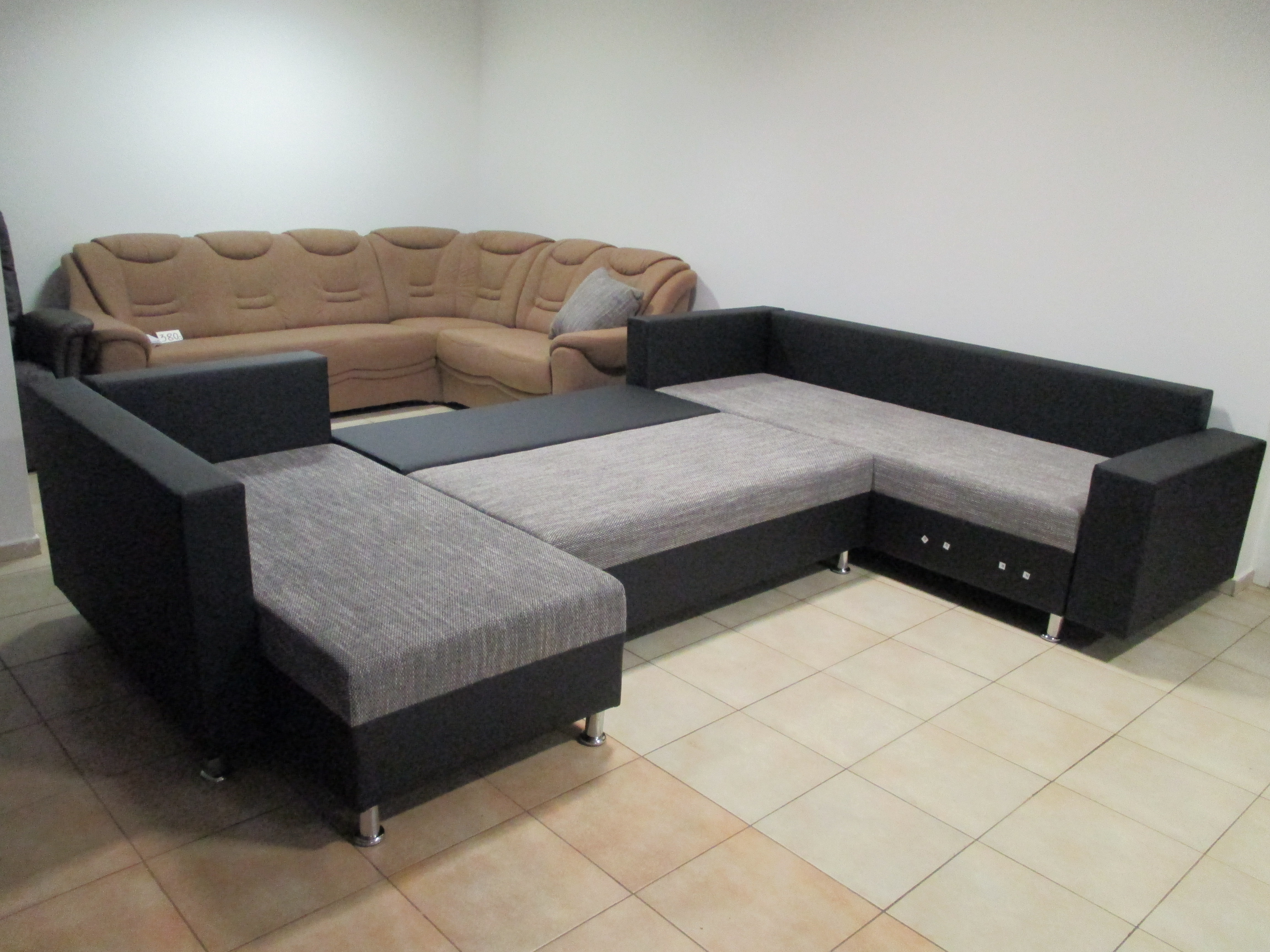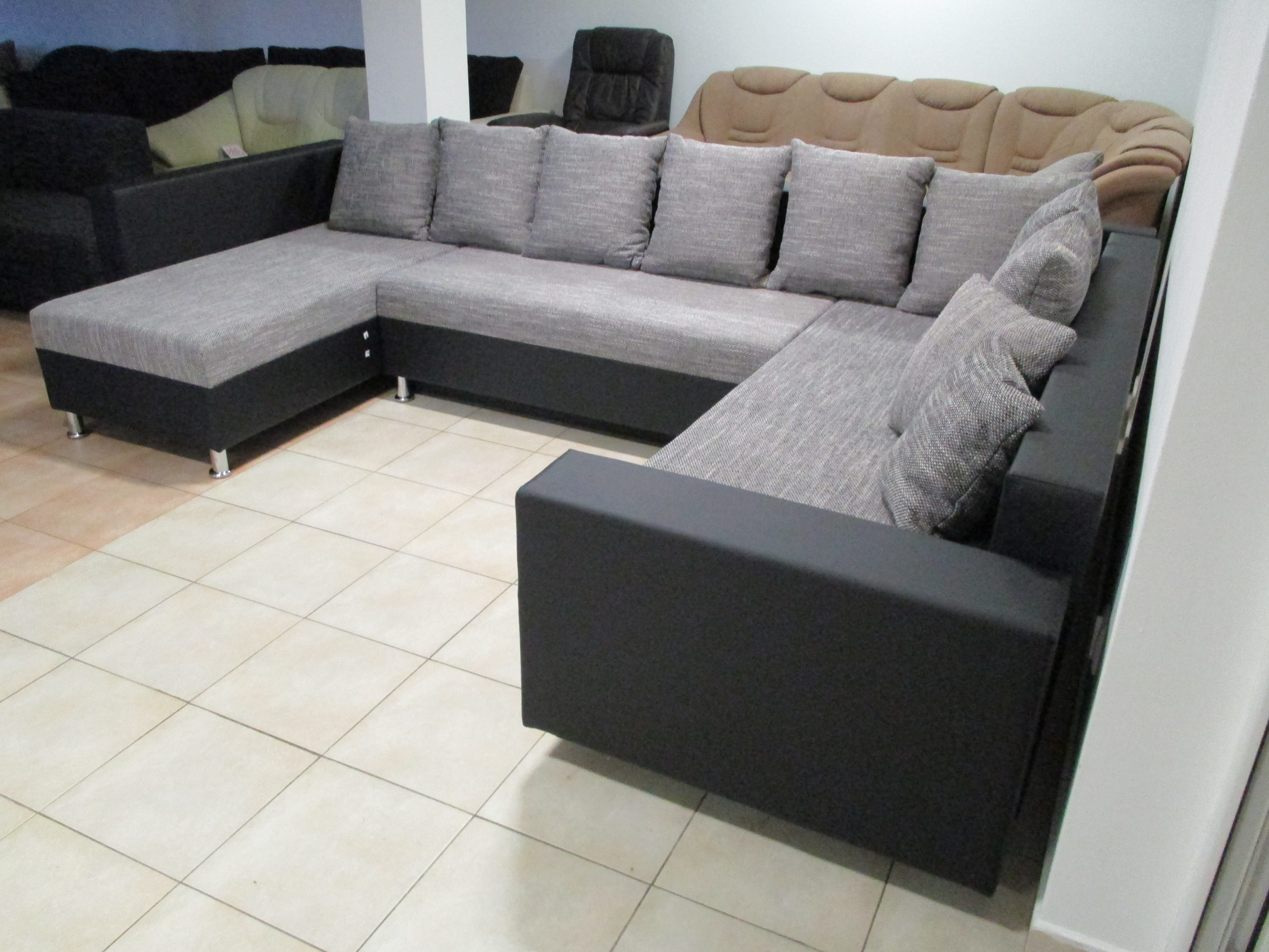Rohová sedačka U s rozkladom a úložným priestorom Pauline SR - armada PU čierna / lucy 1 sivá