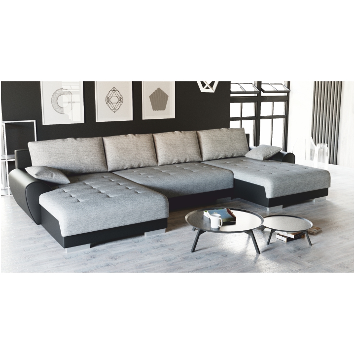 Rohová sedačka U s rozkladom a úložným priestorom Trendy L/P - čierna / sivá melírovaná