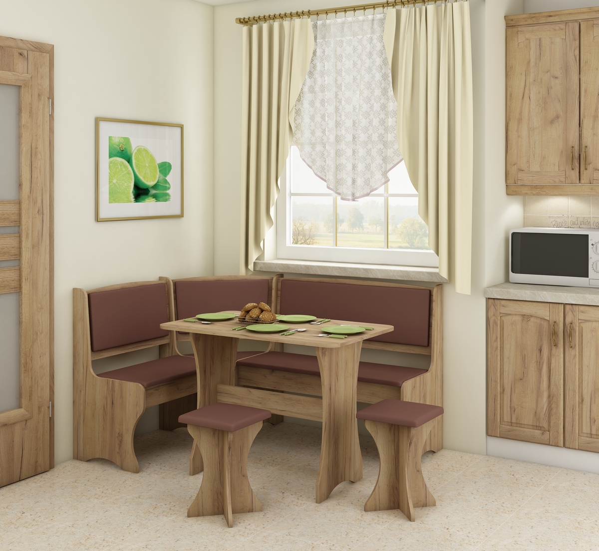 Rohový jedálenský set ZKU-01/04 L/P - craft zlatý / hnedá ekokoža