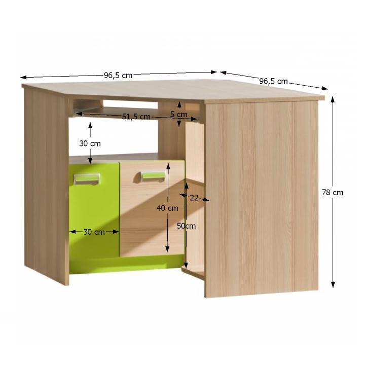 Rohový PC stolík Ego L11 - jaseň / zelená