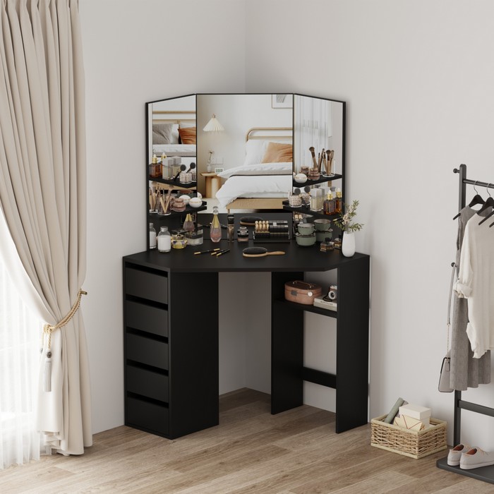 Rohový toaletný stolík Elio - čierna