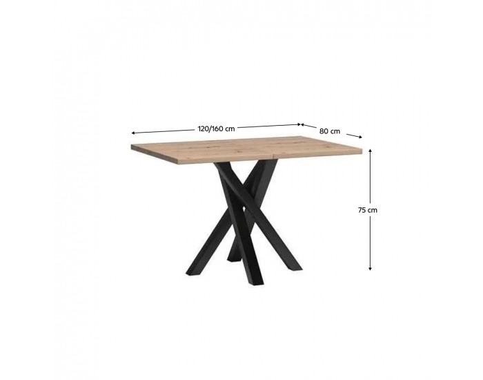 Rozkladací jedálenský stôl Koli 120/160 - dub artisan / čierna