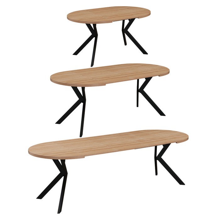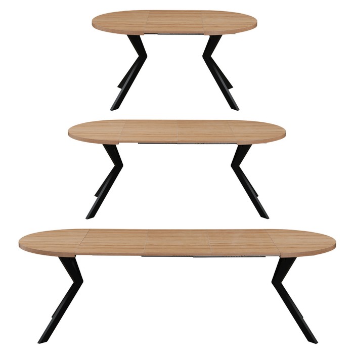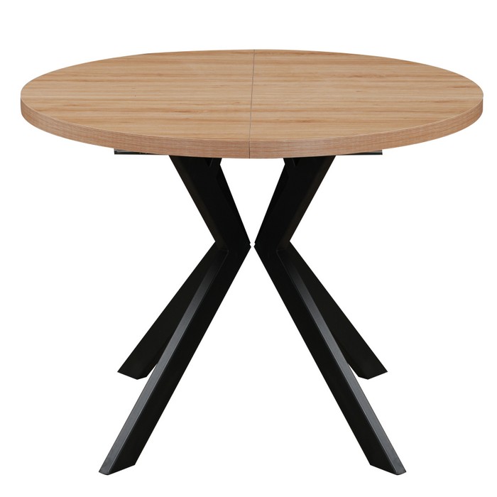 Okrúhly rozkladací jedálenský stôl LUKOS je praktickým a štýlovým riešením pre každodenné stolovanie aj väčšie rodinné stretnutia. Doska stola je vyrobená z fóliovanej MDF v prevedení svetlý dub, ktoré pôsobí čisto a ľahko sa kombinuje s ostatným nábytkom. Stabilitu zabezpečuje kovová konštrukcia nôh v čiernom dekore, ktorá dodáva stolu moderný vzhľad. Stôl má rozmery (ŠxHxV): 100x100x75,5 cm a hrúbka vrchnej dosky je 3,6 cm. Pri rozložení sa využívajú tri prídavné stredové dosky s hrúbkou 1,8 cm. Pomocou jednej dosky je možné stôl predĺžiť na 150 cm, s dvoma doskami na 200 cm a s troma doskami až na 250 cm. Vďaka tomu je vhodný pre 4 až 8 osôb. Nosnosť stola je 38 kg, pričom sa odporúča zaťažovať ho rovnomerne. Stôl je dodávaný v demonte, čo uľahčuje jeho prepravu a manipuláciu. Praktický okrúhly tvar a rozkladací mechanizmus z neho robia ideálnu voľbu do jedálne aj kuchyne.