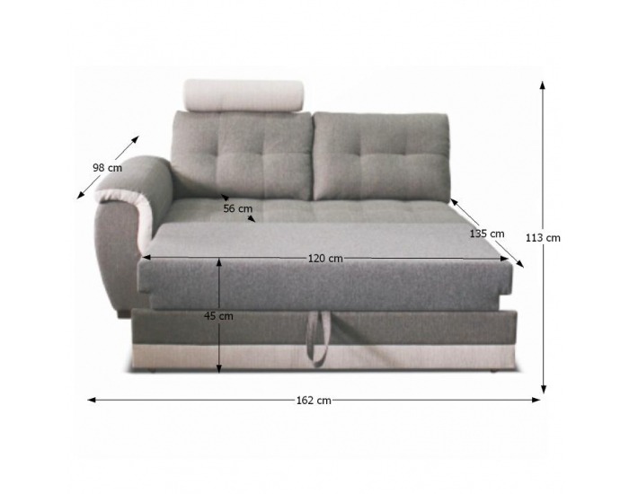 Rozkladacia dvojsedačka so záhlavím Ruba L - tmavosivá / krémová