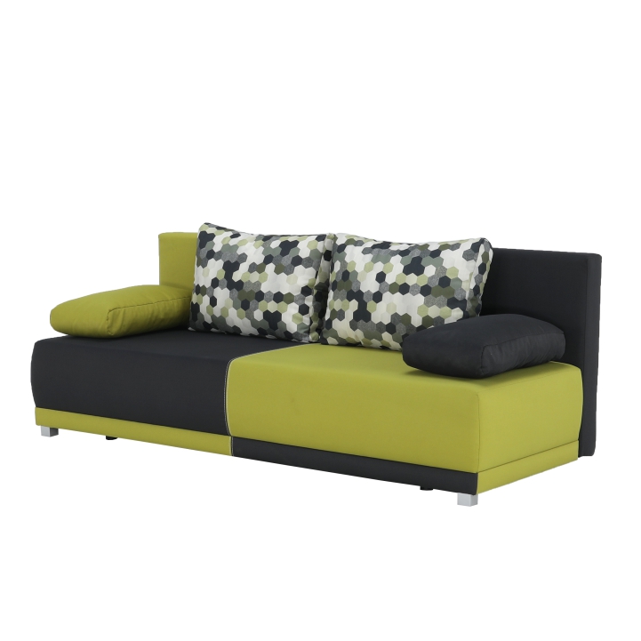 Rozkladacia pohovka s úložným priestorom Spiker - zelená / sivá / vzor