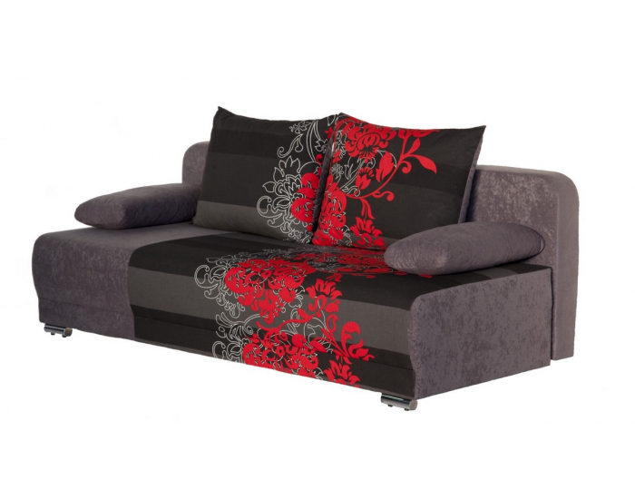 Rozkladacia pohovka s úložným priestorom Zico - bavlna kvety červené / suedine šedý