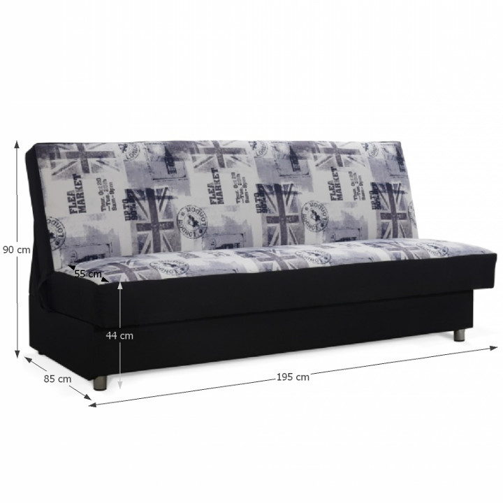 Rozkladacia pohovka Salisa - čierna / sivý vzor