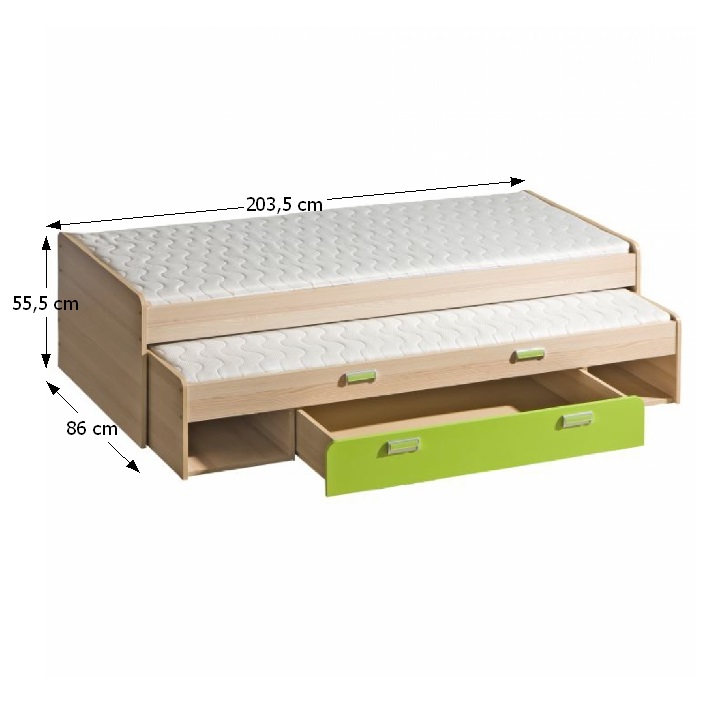 Rozkladacia posteľ s prístelkou Ego L16 80 - jaseň / zelená