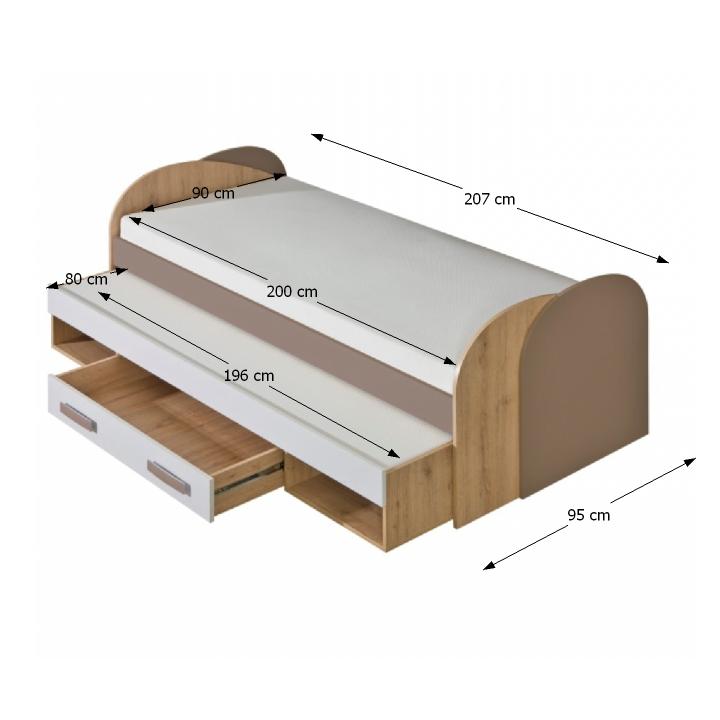 Rozkladacia posteľ s prístelkou Katar K15 90 - san reno / biela / cappuccino
