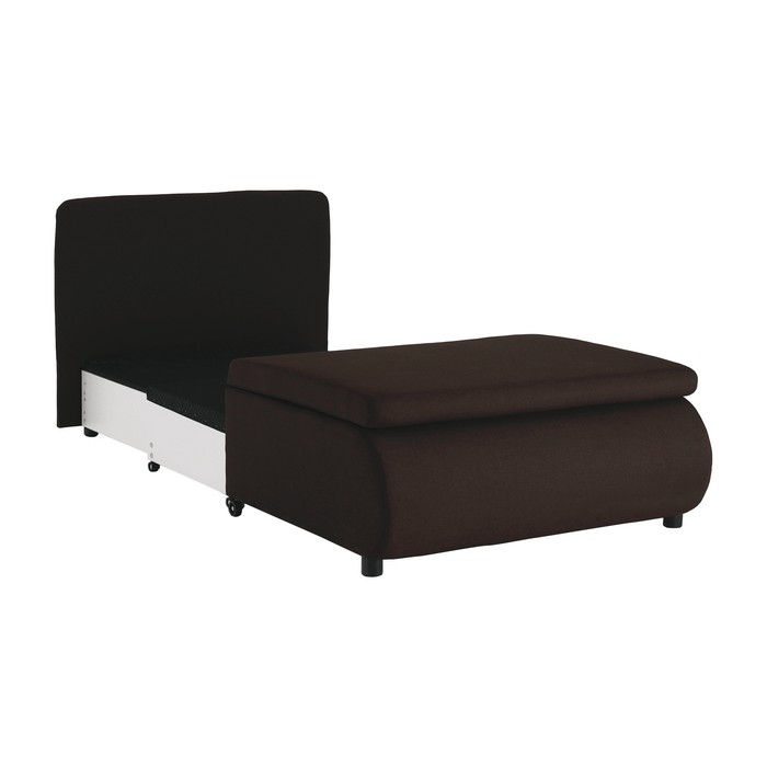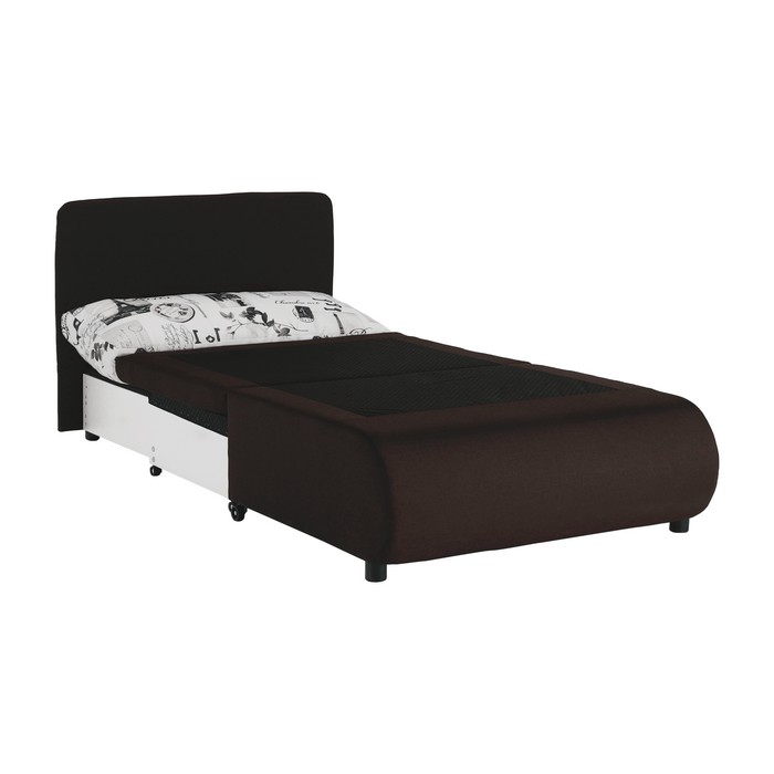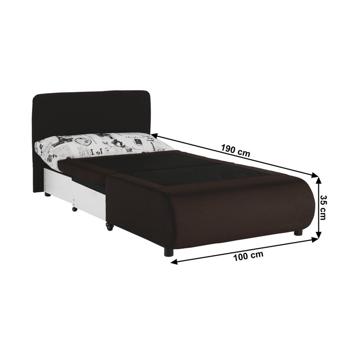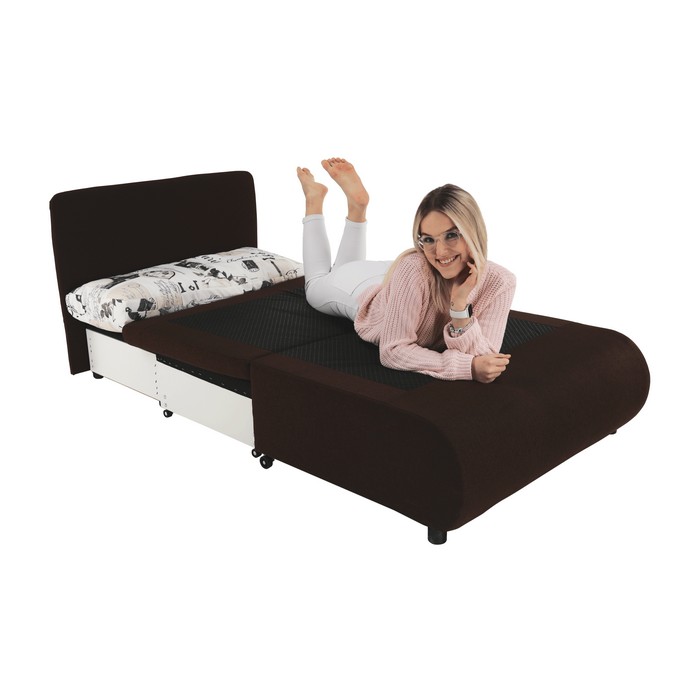 Kreslo KENY NEW ponúka pohodlné sedenie cez deň a v noci sa jednoducho rozloží na plnohodnotnú posteľ s plochou na spanie 100x190 cm. Celkové rozmery kresla sú (ŠxHxV): 100x87x90 cm. Sedák má výšku 45 cm, jeho hĺbka je 78 cm bez vankúša a 55 cm s opierkovým vankúšom, ktorý má rozmery 100x40 cm. Po rozložení lôžka je výška spacieho miesta 35 cm a spodný priestor od podlahy má 5 cm, čo uľahčuje údržbu. Kreslo je čalúnené kvalitnou hnedou látkou Savana, ktorá má odolnosť až 80 000 oderov podľa testu Martindale. Nosnosť kresla je 70 kg. Súčasťou je aj vzorovaný opierkový vankúš, ktorý pohodlne podoprie hlavu pri spánku. Manipuláciu pri rozkladaní uľahčujú kolieska na nožičkách, takže rozloženie zvládnu aj deti. Praktickým bonusom je úložný priestor, ideálny na posteľnú bielizeň alebo drobnosti. Kreslo je dodávané v demonte a je vhodné do detskej či študentskej izby, ale aj do modernej obývačky, kde poslúži ako komfortné kreslo a zároveň rýchle miesto na spanie pre návštevu.