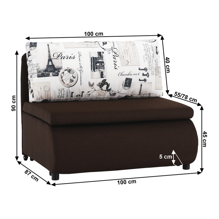 Rozkladacie kreslo s úložným priestorom Keny New - hnedá / vzor (Paris 03)