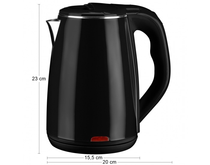 Rýchlovarná kanvica ERVIN 1,8 l je vyrobená z prvotriednej kvalitnej nehrdzavejúcej ocele z vnútornej strany, vonkajšia strana je z plastu. Výkon kanvice je 1500W, má otočnú základňu, úložný priestor na kábel a ploché výhrevné teleso. Automatické vypnutie zabezpečí, že sa voda nebude variť donekonečna, ale kanvica sa automaticky vypne. Objem má až 1,8 litra a vyrobená je v univerzálnom prevedení čierna. Rýchlovarná kanvica Ervin je praktickým pomocníkom a neodmysliteľnou súčasťou každej modernej domácnosti. Celkové rozmery (ŠxHxV): 20x15,5x23 cm.