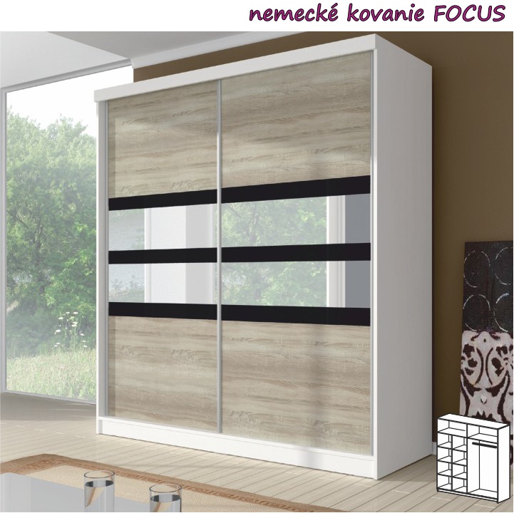 Šatníková skriňa Multi 10 2D 203x218 cm - dub sonoma / biela / čierne sklo