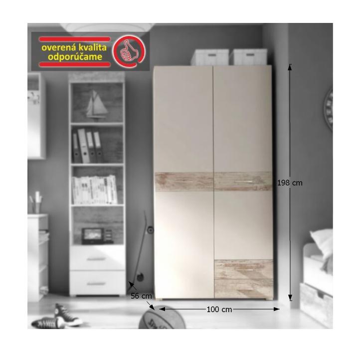 Šatníková skriňa Drago JU-02 2D - biela / dub canyon