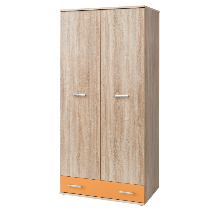 Šatníková skriňa Emio Typ 2 2D - dub sonoma / oranžová