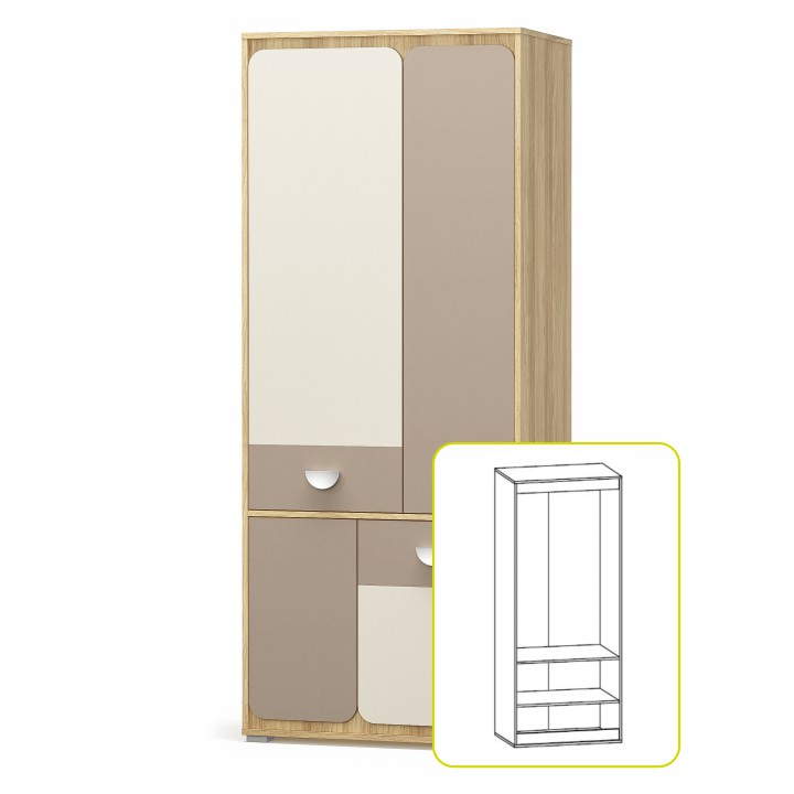 Šatníková skriňa Lotty 4D - dub jačmenný / champagne / cappuccino
