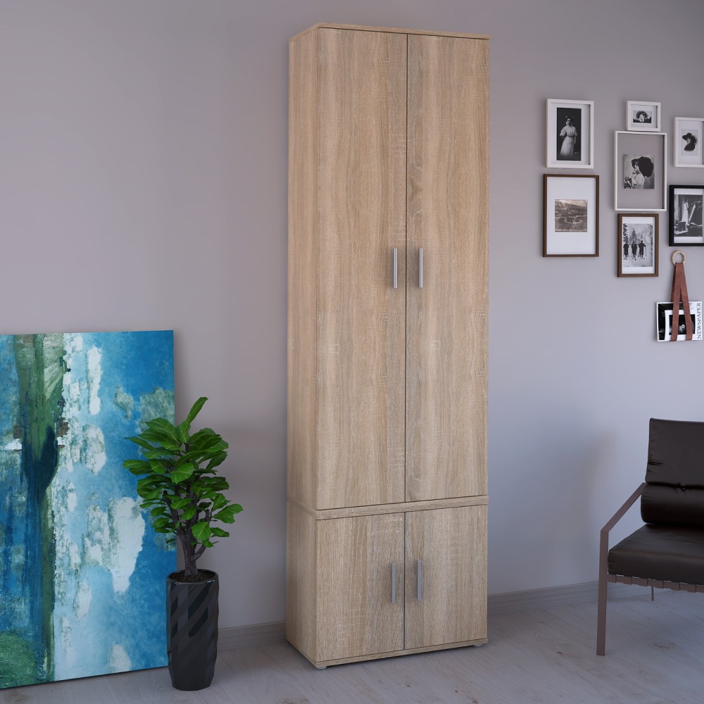 Predstavujeme vám dvojdverovú nadstavbu na šatníkovú skriňu SERVO TYP 3 v elegantnom prevedení dub sonoma, ktorá je ideálnym riešením pre moderné interiéry. Praktické a štýlové riešenie pre vašu domácnosť. Nadstavba Servo Typ 3 je vyrobená z kvalitného aglomerovaného materiálu vo forme laminovanej drevotriesky. Za dvierkami sa nachádza úložný priestor, ktorý obsahuje policu. S rozmermi 70 cm na šírku, 56,6 cm na výšku a 35 cm na hĺbku poskytuje dostatok priestoru na uskladnenie oblečenia či iných osobných vecí. Servo Typ 3 je vhodným riešením ako nadstavba na iný nábytok alebo ako samostatná úložná skrinka v moderných domácnostiach. Servo Typ 3 disponuje plastovými úchytkami a je postavená na plastových nožičkách.